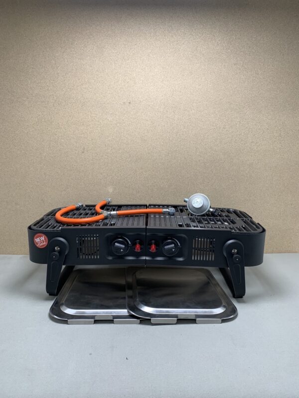 Gasgrill mit zwei Flammen, mit Tragetasche, Gussplatte mit Abdeckung ,neuwertig