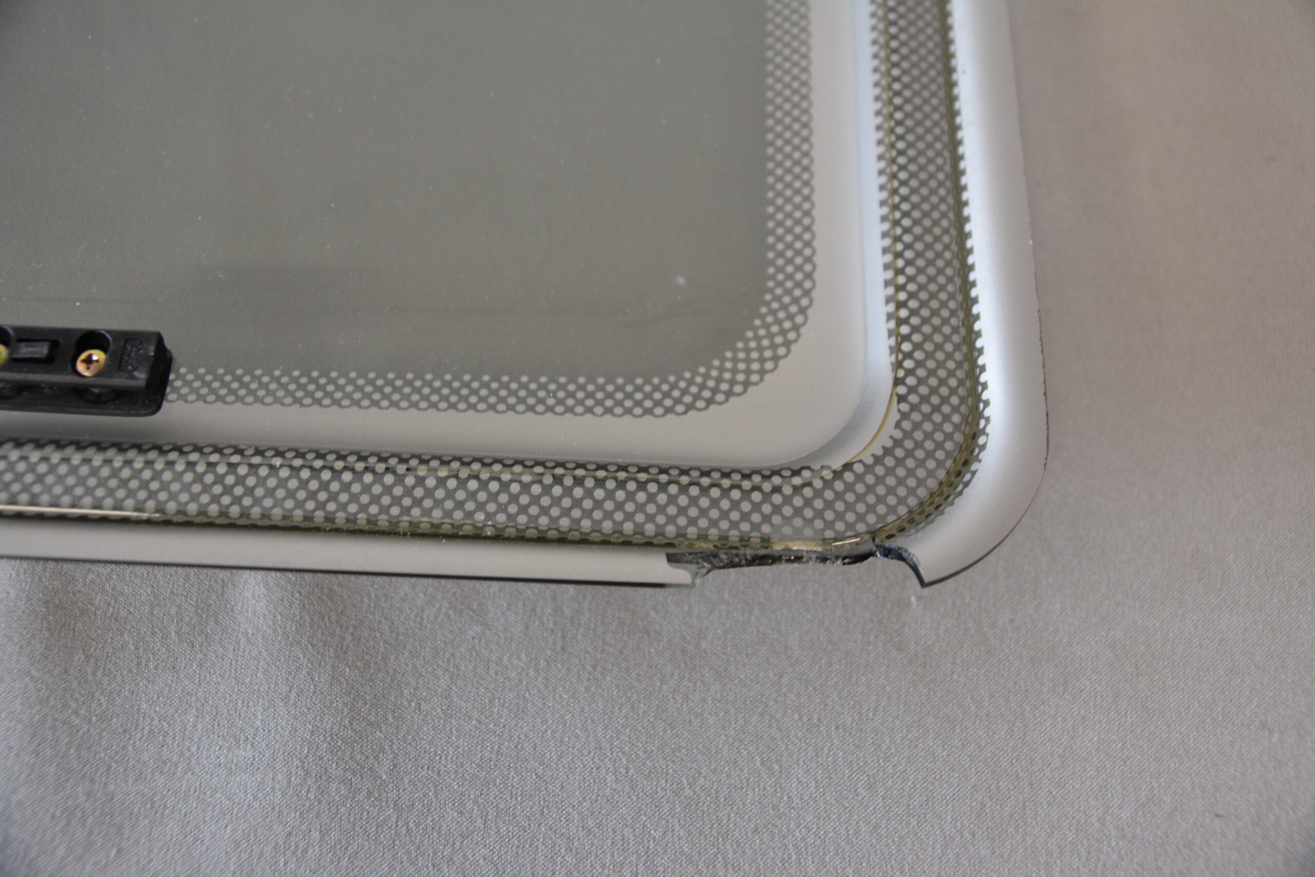 Ecke am Fenster weggebrochen, hat keinen Einfluss auf die Dichtigkeit siehe Fotos