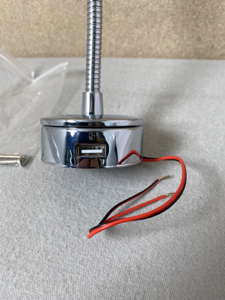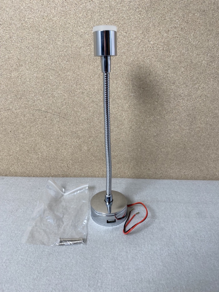 Schwanenhalslampe / Leselampe LED mit USB-Anschluss 18cm Chrome 12 V