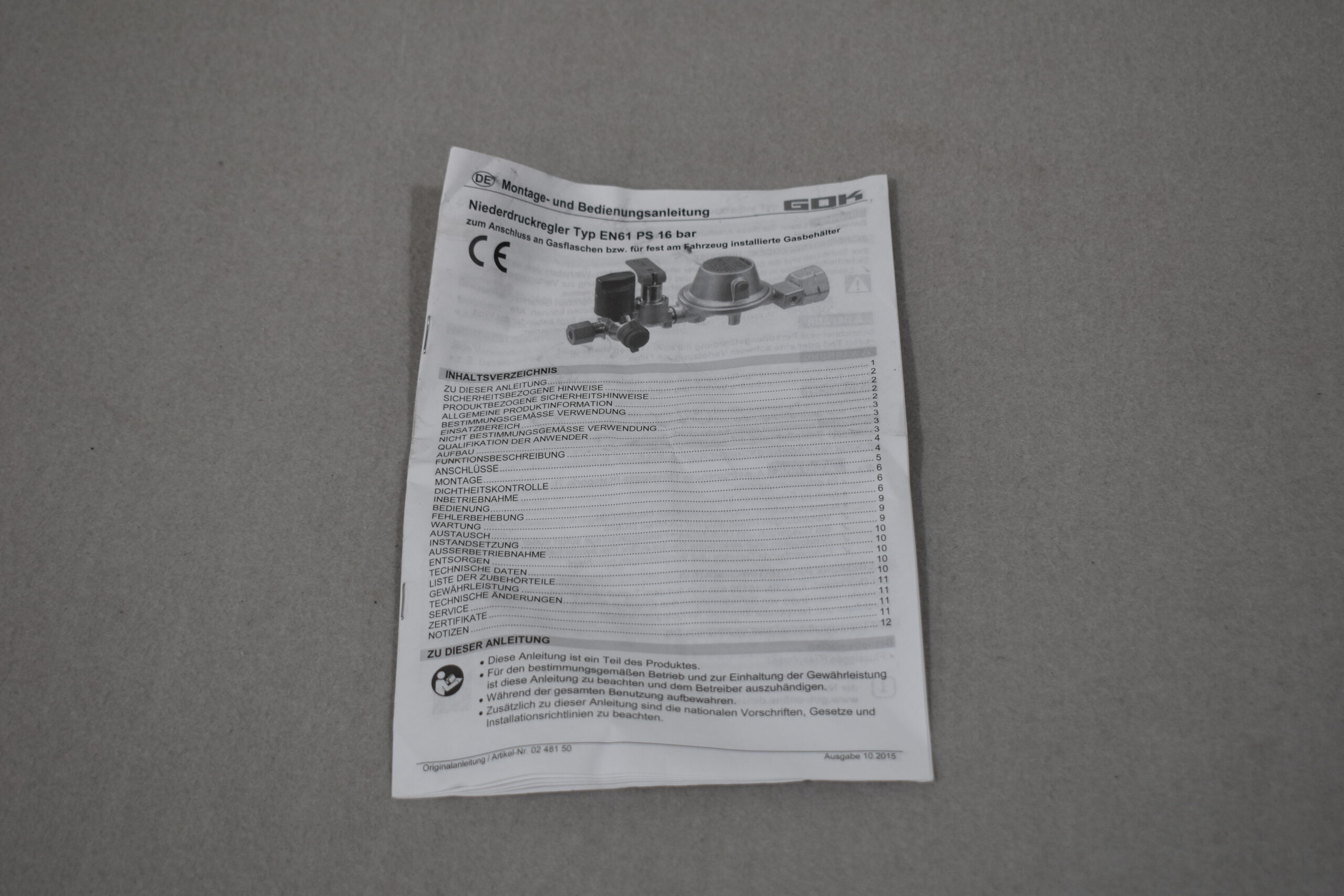 GOK Niederdruckregler/ Gasregler; Typ EN 61; 16 Bar