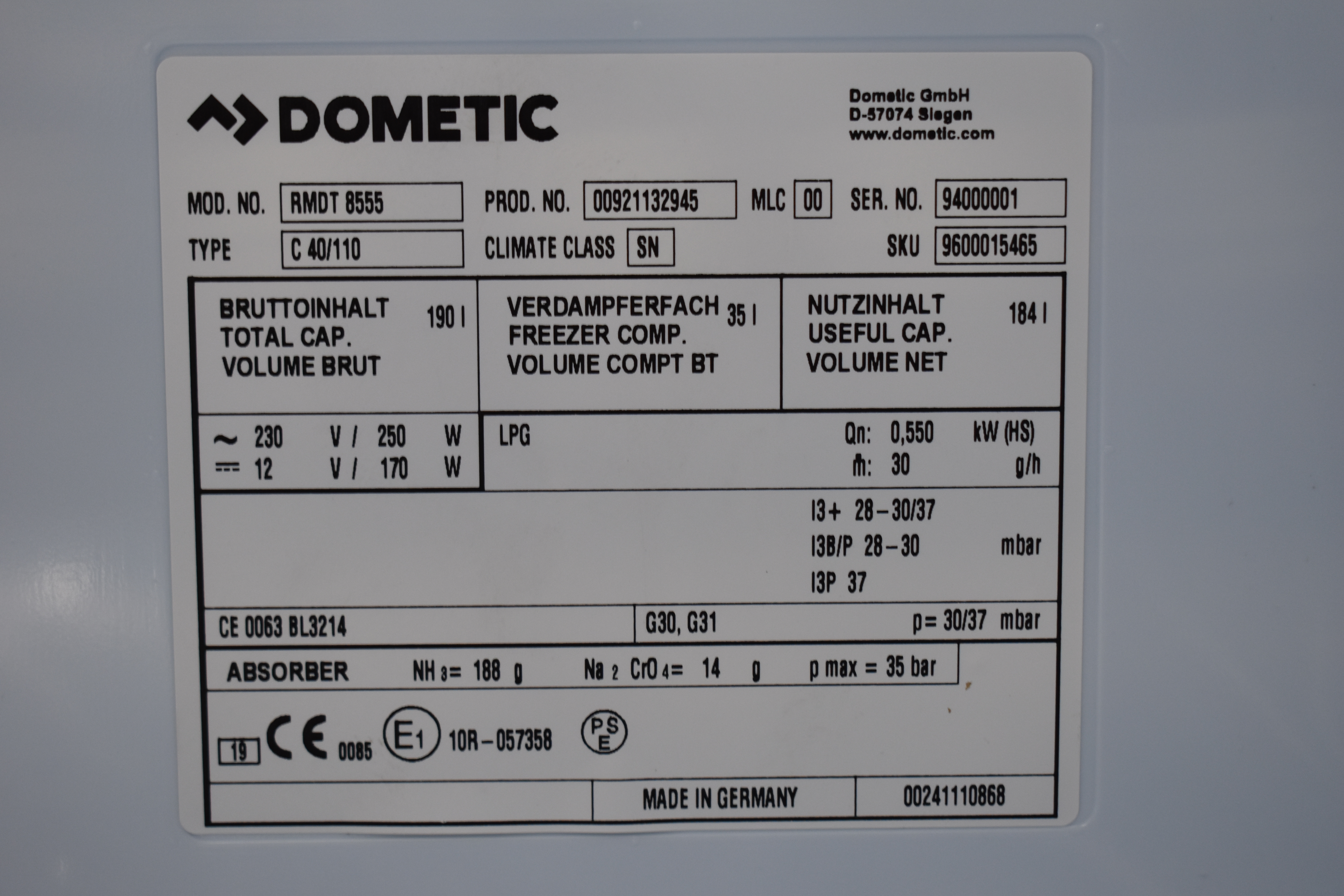 Dometic RMDT 8555 Kühl-Gefrierkombi inkl. Backofen