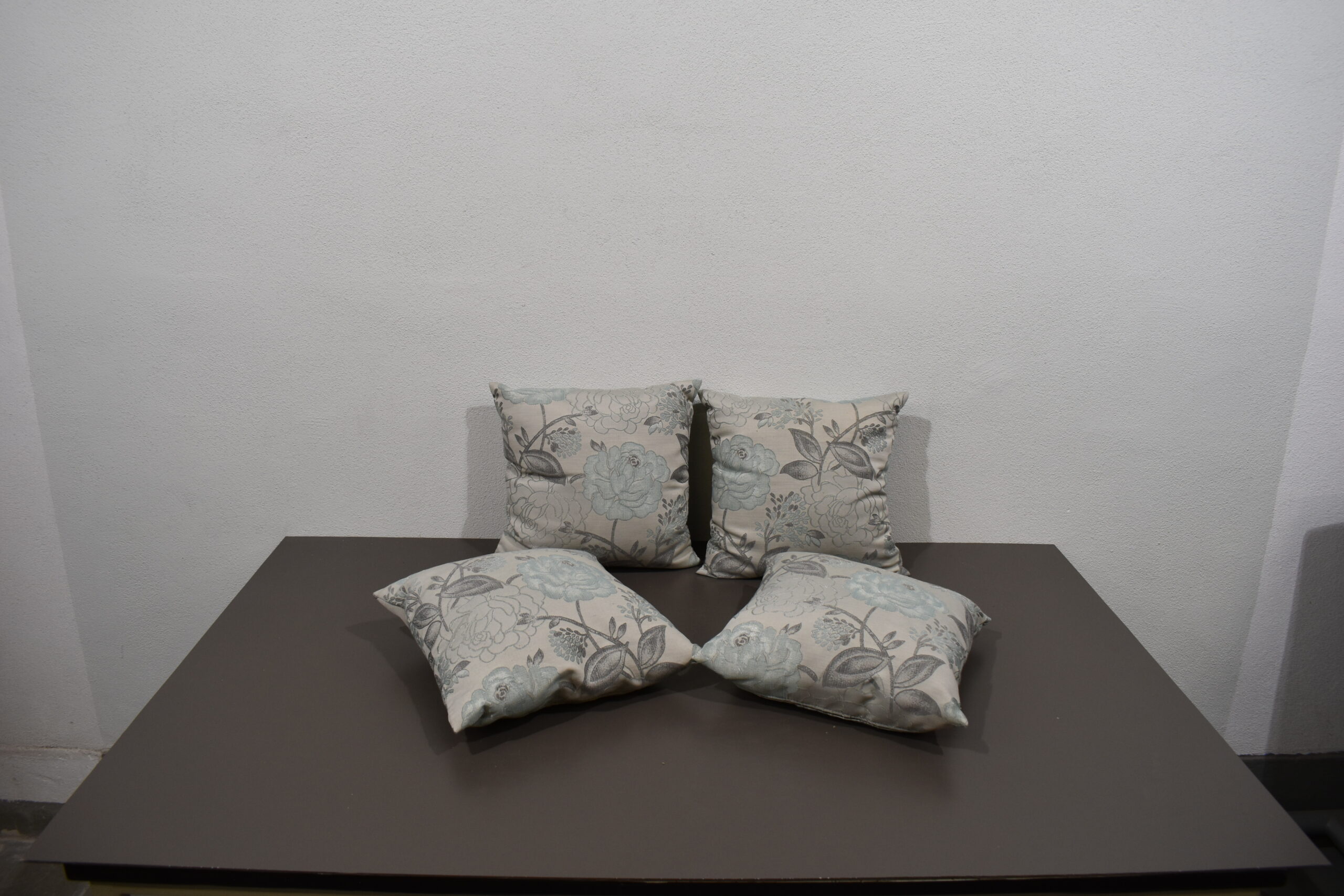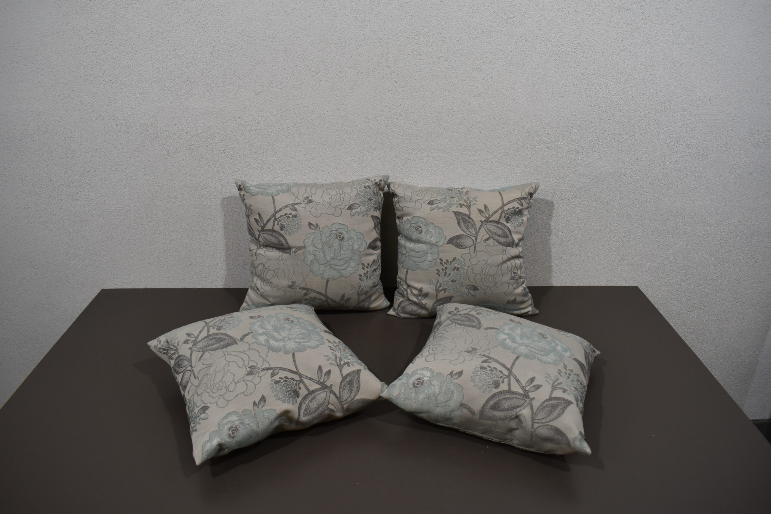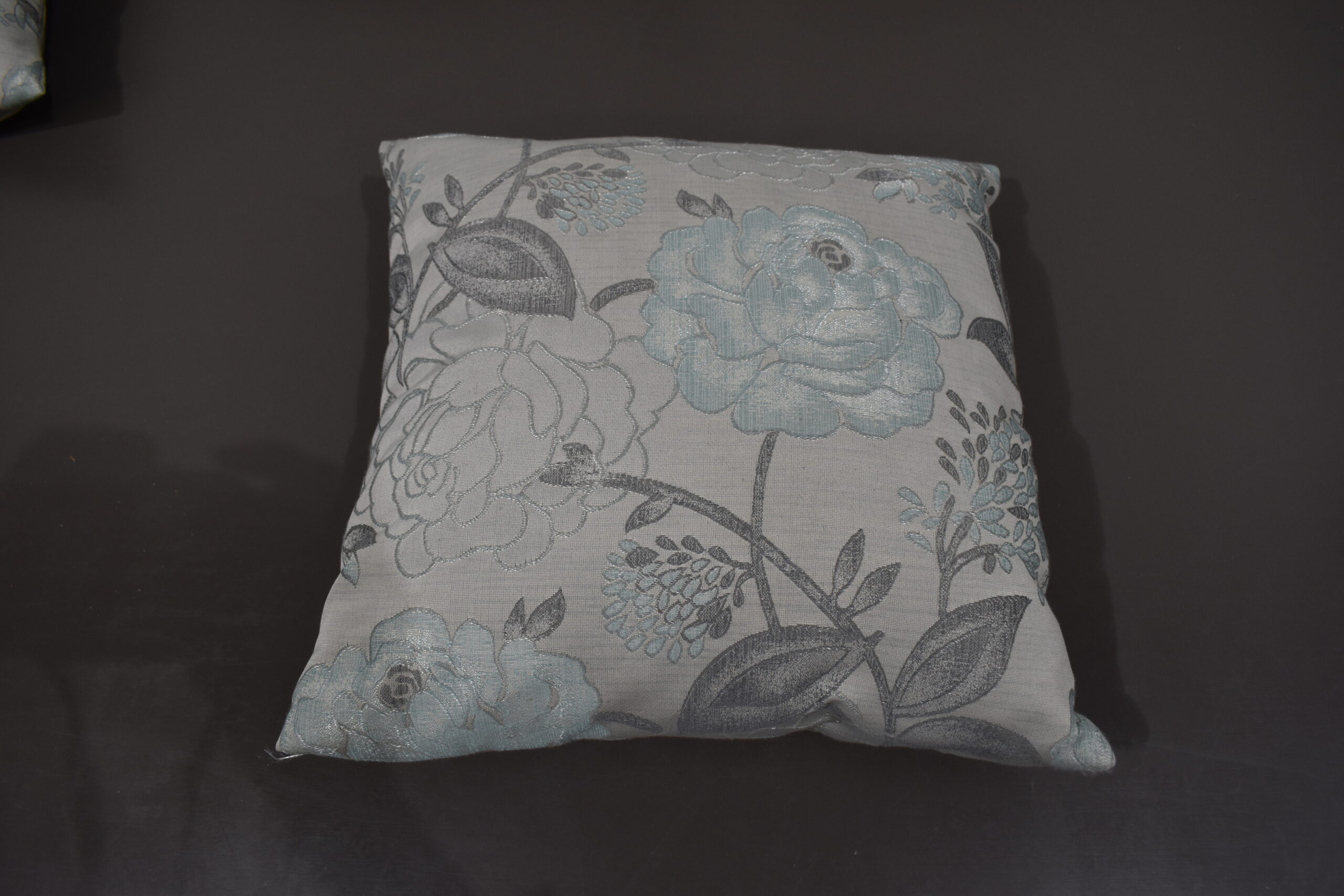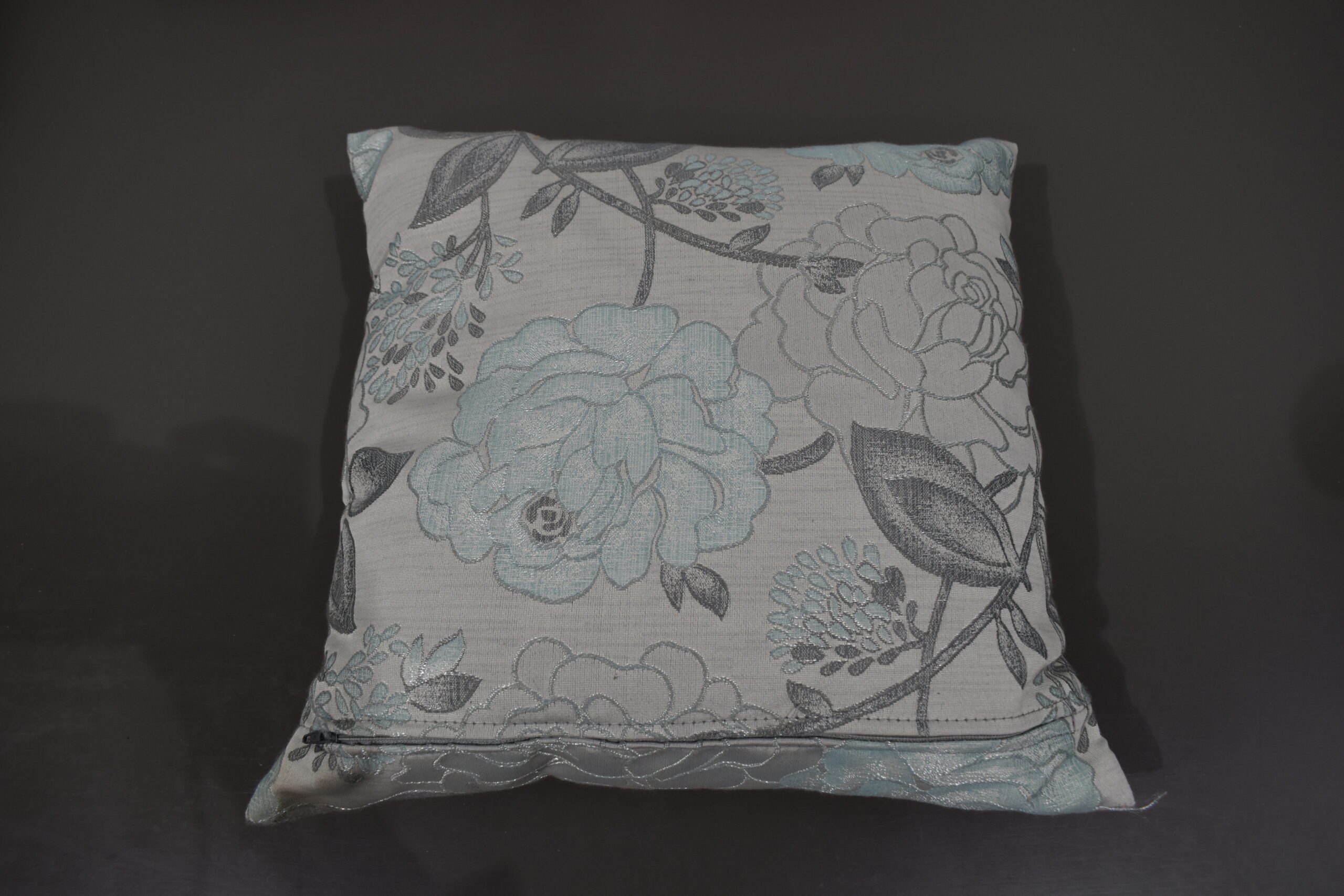 Kissen / Zierkissen-Set; grau/blau; 380x380mm Blumenmuster