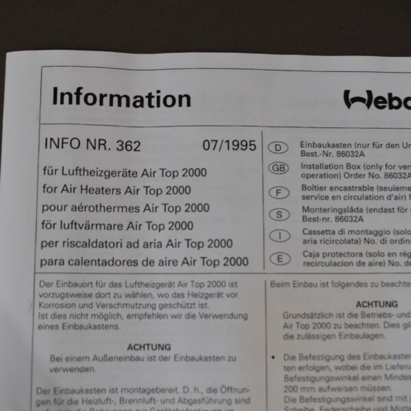 Webasto Unterflur Einbaukasten für Luftheizgerät Air Top 2000