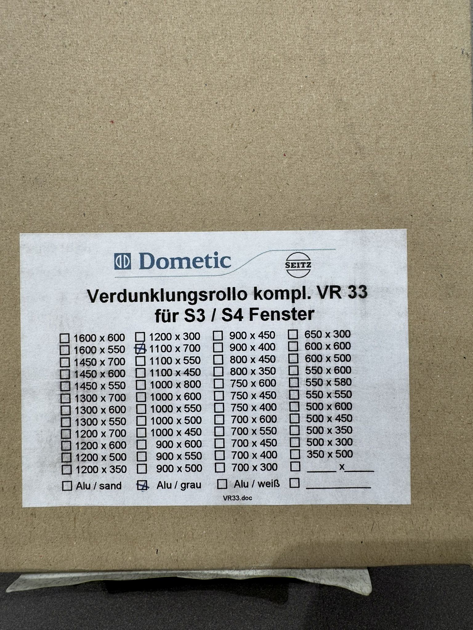 Dometic Verdunklungsrollo kompl. für S3 / S4 Fenster 1100×700 Alu / grau