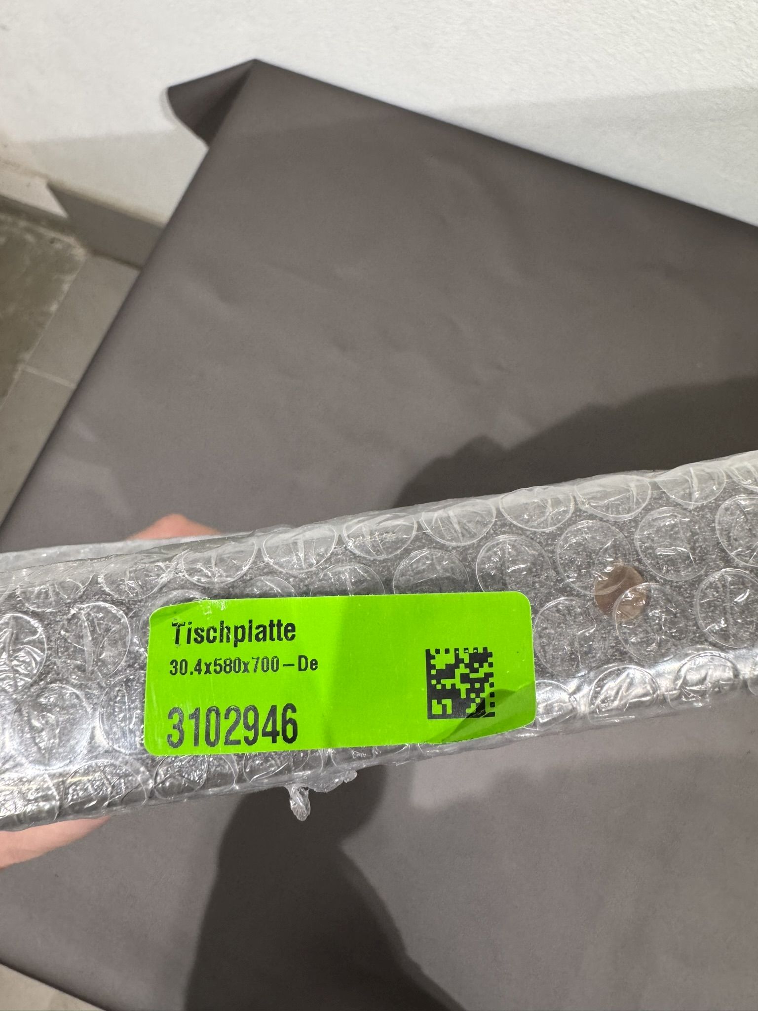 Auf der Tischplatte ist eine Schutzfolie!