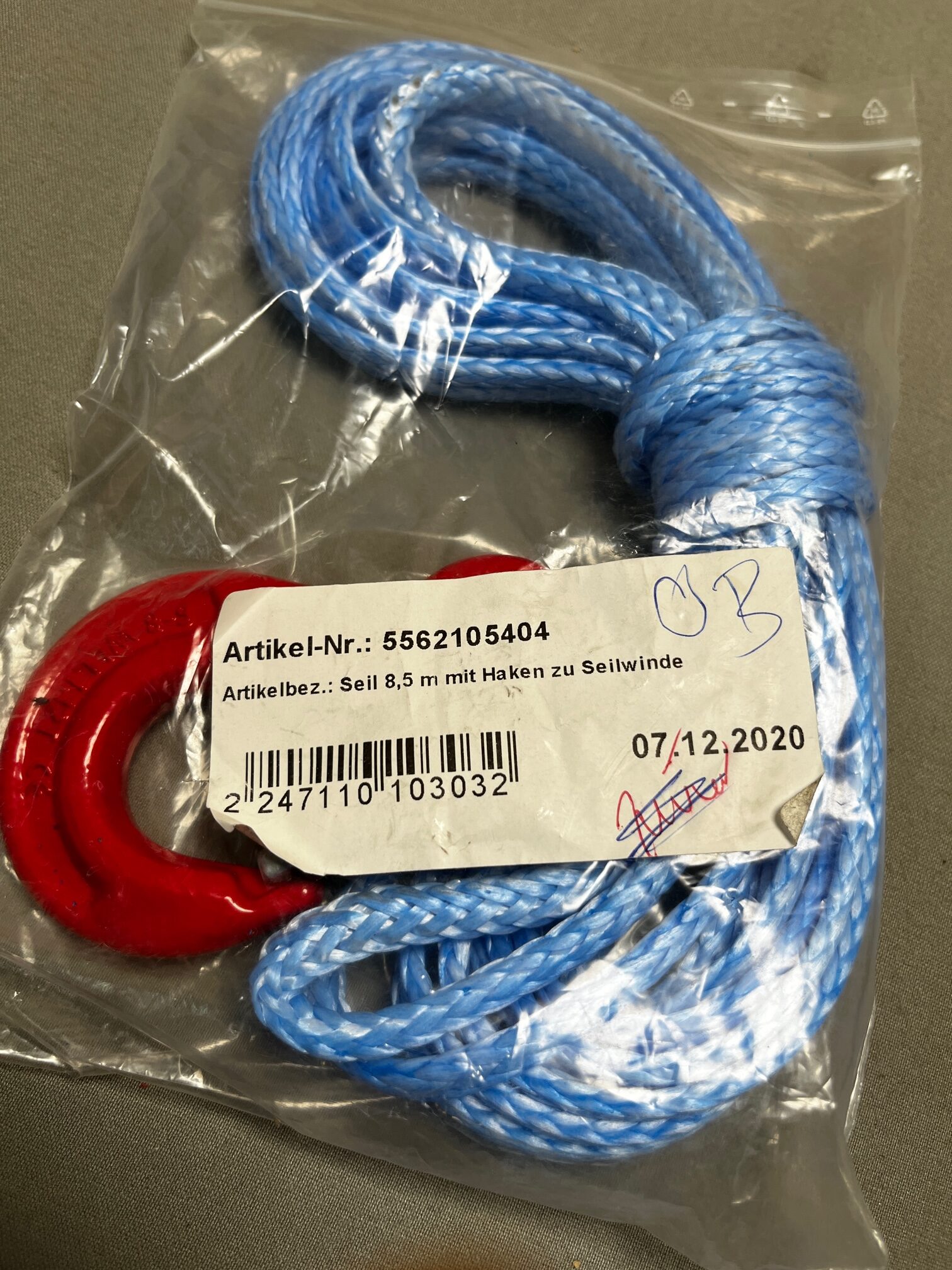 Seil mit Haken 8,5 m zu Seilwinde Art. Nr.: 5562105404
