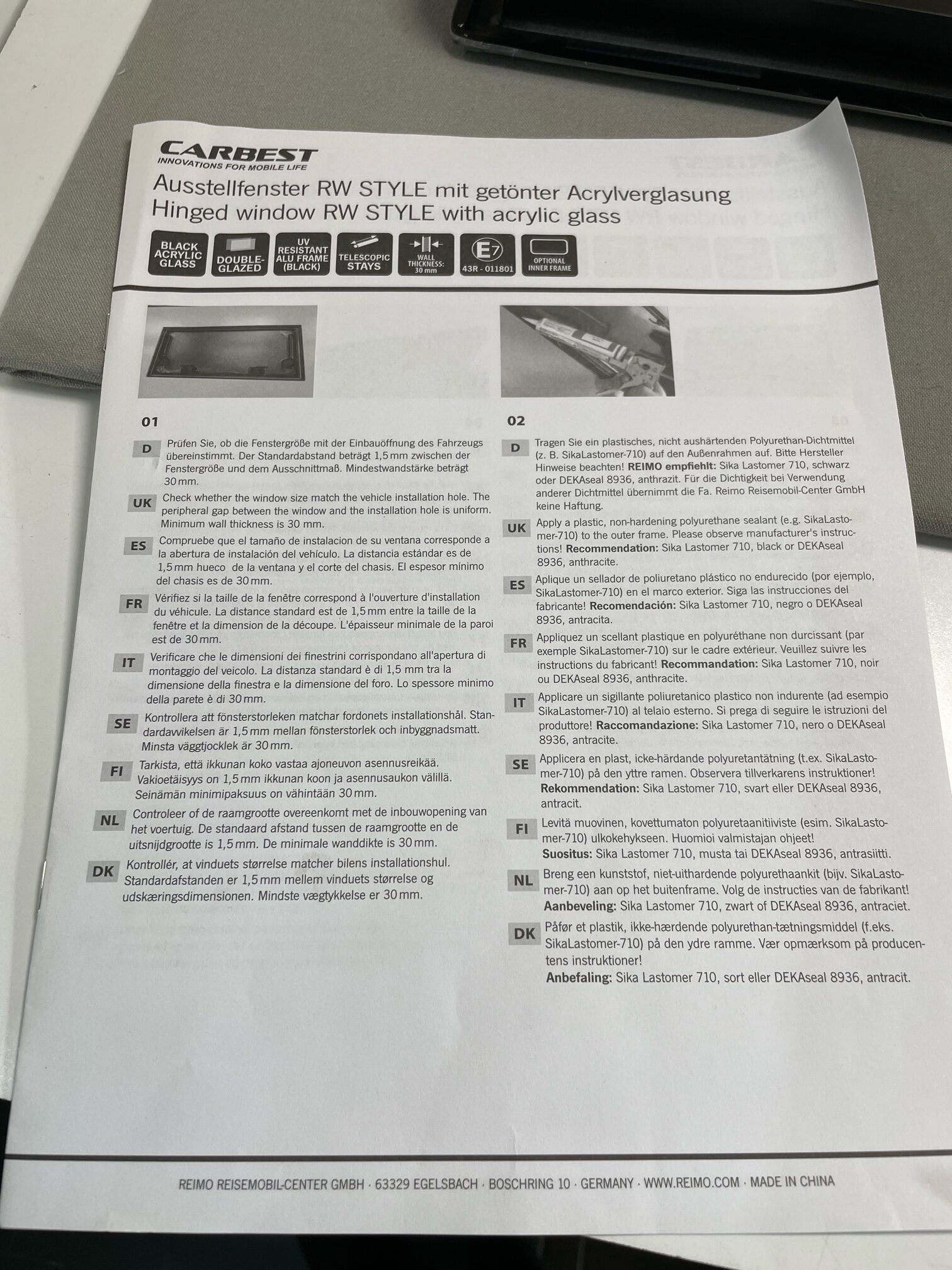 Ausstellfenster RW Style mit getönter Acrylverglasung, Carbest, 700 x 300 cm