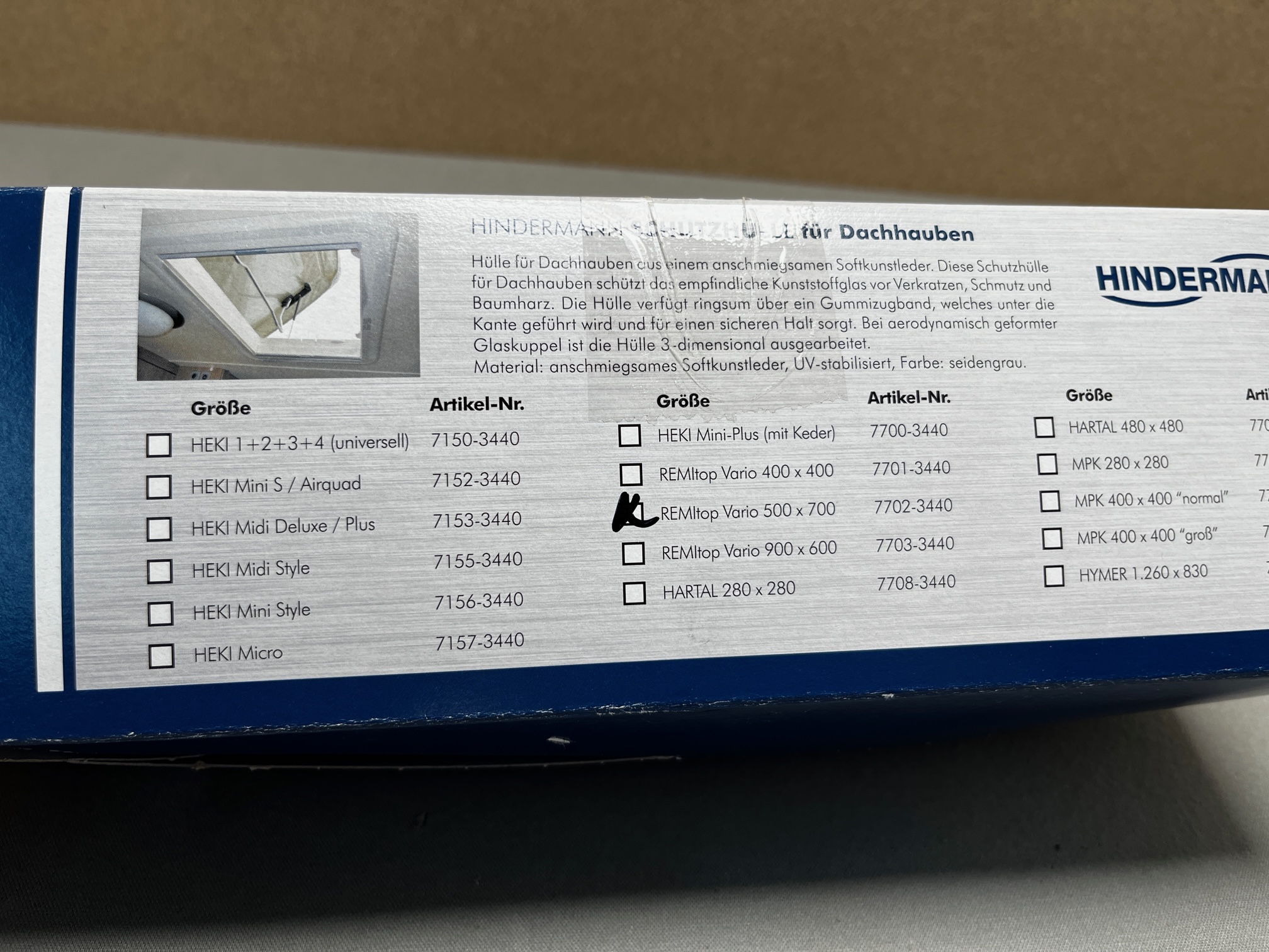 Hindermann Schutzhülle Dachhaube für Remitop Vario 500×700 Art.Nr.: 7702-3440